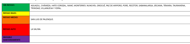 Según el informe, el municipio de La Salina presenta nivel de riesgo alto, mientras que San Luis de Palenque registra riesgo medio.