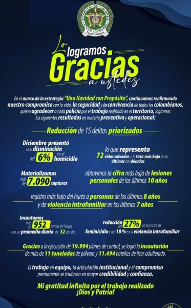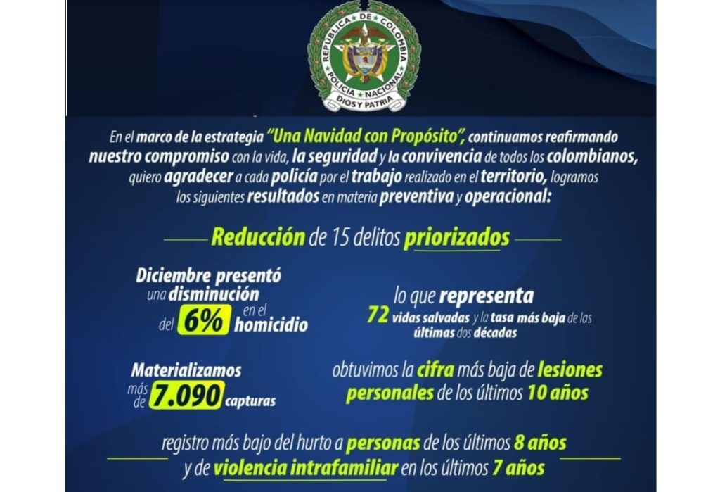 El Departamento de Policía Casanare entregó un reporte detallado sobre los operativos realizados bajo la estrategia Navidad con Propósito durante el cierre del año 2025.