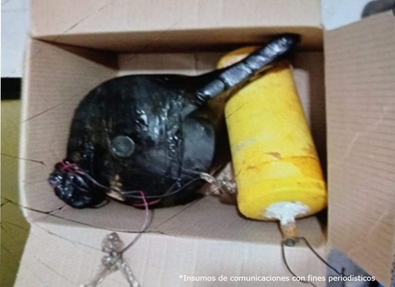 El dispositivo fue identificado por los uniformados durante una ronda de inspección. Al percatarse de su naturaleza peligrosa, decidieron intervenir. En el interior de la caja encontraron un artefacto explosivo improvisado, compuesto por una olla a presión cargada con metralla, más de diez kilogramos de nitrato de amonio y un complejo sistema de activación a distancia que utilizaba un radio comunicador y un teléfono móvil.