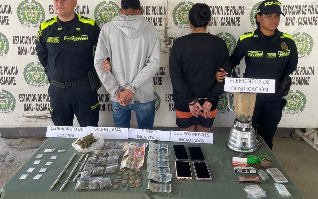 La Policía Nacional capturó a dos personas en el municipio de Maní, Casanare, durante una diligencia de allanamiento y registro realizada por la Seccional de Investigación Criminal (SIJIN). Los detenidos fueron aprehendidos en flagrancia por el delito de tráfico, fabricación o porte de estupefacientes.
