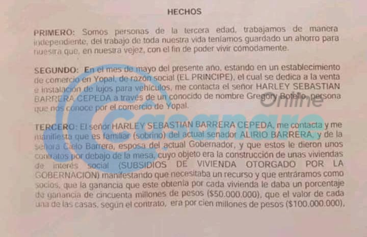 Por otra parte, Harley Sebastián Barrera Cepeda el verdadero titular de la orden de captura, es hijo de la esposa de uno de los hermanos del senador, quien lo adoptó dándole su apellido.