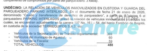 Una denuncia ciudadana reveló la presunta desaparición de aproximadamente 488 vehículos, el 90% de ellos motocicletas, que se encontraban bajo custodia en el parqueadero oficial Interlagos, ubicado en la carrera 4 #7-11 de Aguazul, Casanare.