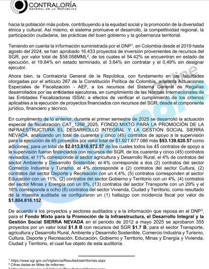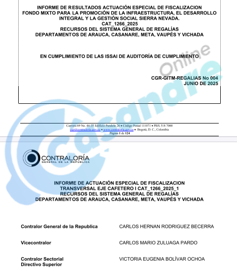 La Contraloría General de la República estableció un hallazgo administrativo con presunta incidencia fiscal por más de 1.804 millones de pesos contra esta entidad tras detectar irregularidades sistemáticas en el manejo de los recursos de regalías.
