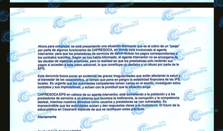 Una denuncia formal presentada recientemente ante múltiples autoridades de control reveló presuntas irregularidades en la gestión de Capresoca EPS, la cual apenas hace pocos días se anunció que continuará intervenida bajo el control de la Superintendencia de Salud, por lo menos hasta el 2026 según su propio comunicado.