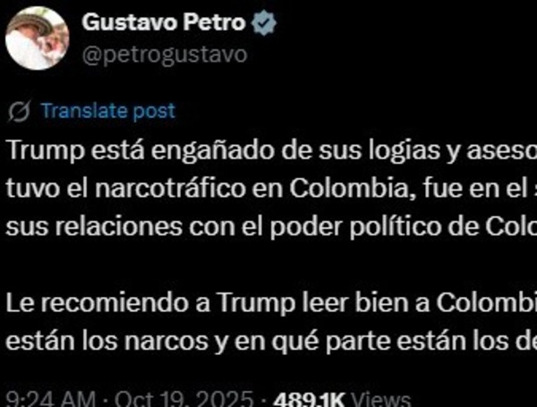 El conflicto se gestó en medio de una profunda crisis diplomática entre Washington y la capital colombiana. La tensión se disparó cuando Donald Trump acusó al presidente Gustavo Petro de ser un «líder del narcotráfico» y procedió a anunciar el cese de la ayuda económica hacia Colombia. La respuesta del líder colombiano fue contundente, al calificar al estadounidense de «grosero e ignorante con Colombia,» profundizando así la disputa bilateral.