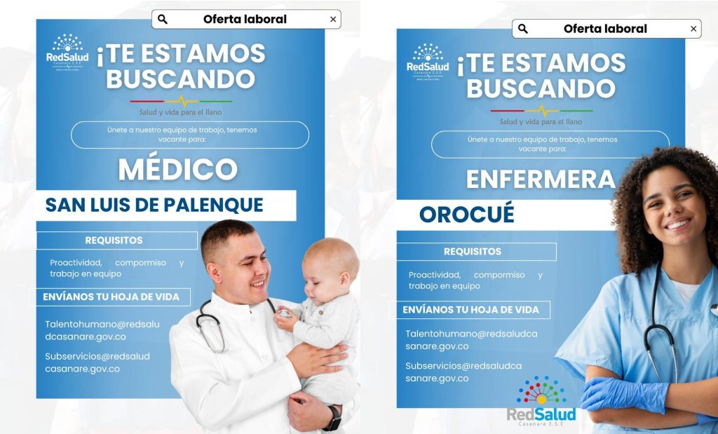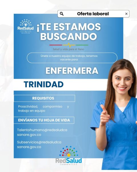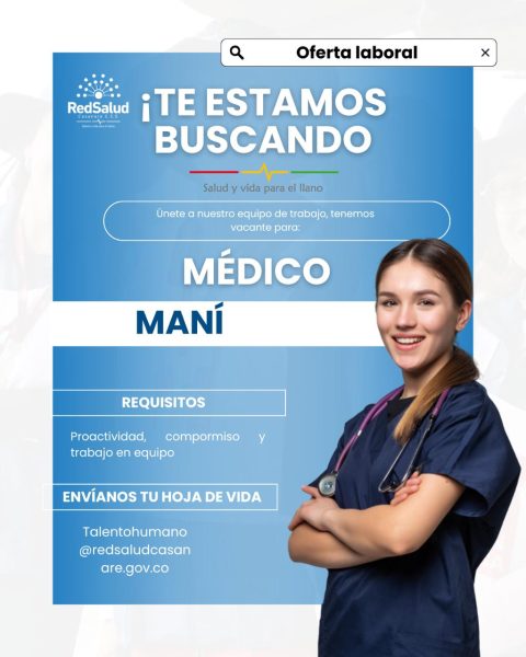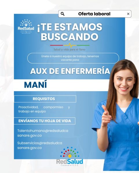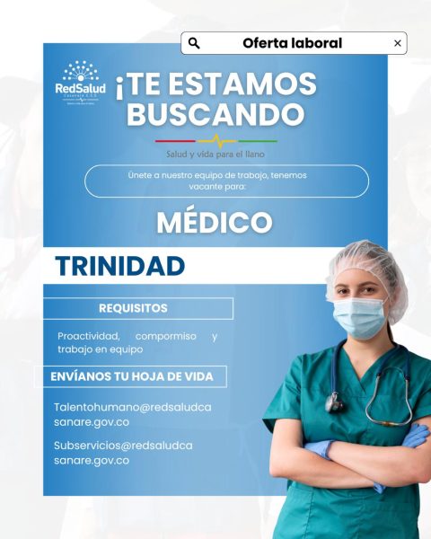 La Red Salud Casanare informó sobre la apertura de un proceso de selección para cubrir varias vacantes en el área de la salud en cuatro municipios del departamento. La convocatoria estuvo dirigida a profesionales dispuestos a integrar los equipos de salud en Maní, San Luis de Palenque, Trinidad y Orocué.