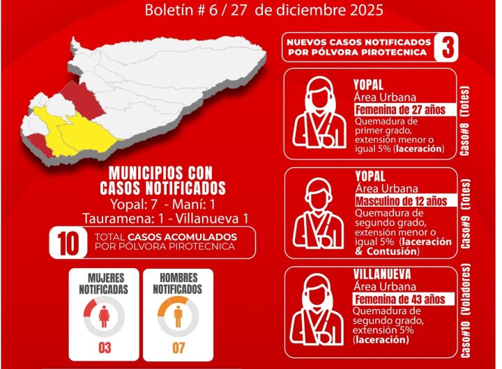 La alerta por pólvora en Casanare se intensifica. Tres nuevas personas se sumaron a la lista de...