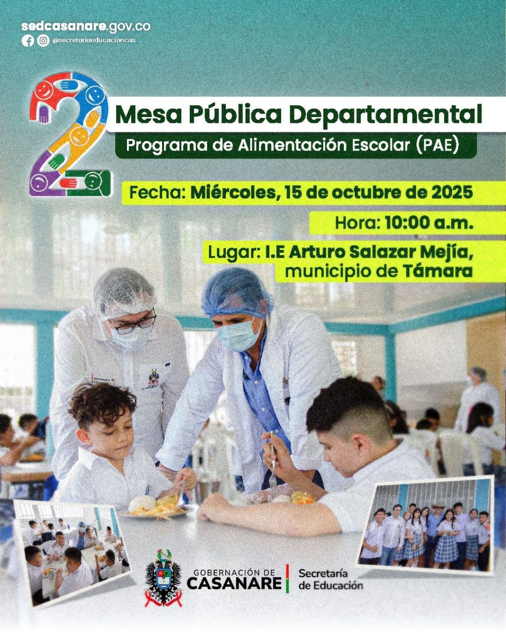 El municipio de Támara será el escenario de un diálogo crucial sobre el futuro de la alimentación escolar en Casanare. La Segunda Mesa Pública Departamental del Programa de Alimentación Escolar (PAE) tendrá lugar el miércoles 15 de octubre de 2025 en la Institución Educativa Arturo Salazar Mejía, a partir de las 10:00 de la mañana.