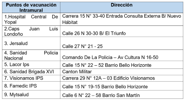 La jornada contará con los siguientes puntos de vacunación intramural: